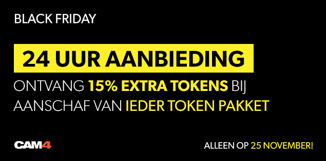 Op 25 November krijg je voor 24 uur 15% extra Tokens bij alle Token Pakketten die we aanbieden! Sla de Tokens in voor de winter, of trakteer jezelf voor het weekend. We hebben Token Pakketten voor elk budget, dus kom langs en vier samen met je Favoriete Performer ‘Black Friday’ op CAM4!