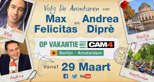 Om de avonturen van Max en Andrea te kunnen volgen, en de fantastische interviews met een aantal CAM4 Performers niet te missen.. zorg dat je de volgende Social Media Accounts volgt 😉
