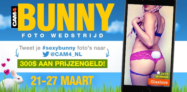 Stuur je Paasfoto of Video naar @Cam4_NL en gebruik de hashtags #CAM4 en #sexybunny. De wedstrijd eindigt op Zondag 27 Maart.