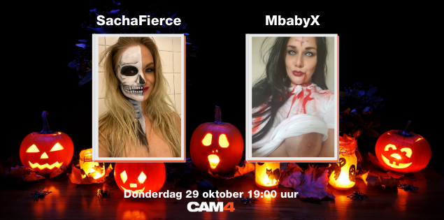 Op donderdag 29 oktober vanaf 19:00 zie camgirls SachaFierce en MbabyX live op CAM4 met een exclusieve Halloweenshow! De dames maken er een onwijze show die je zeker niet wilt missen. De show wordt griezelig geil dat is één ding wat zeker is!